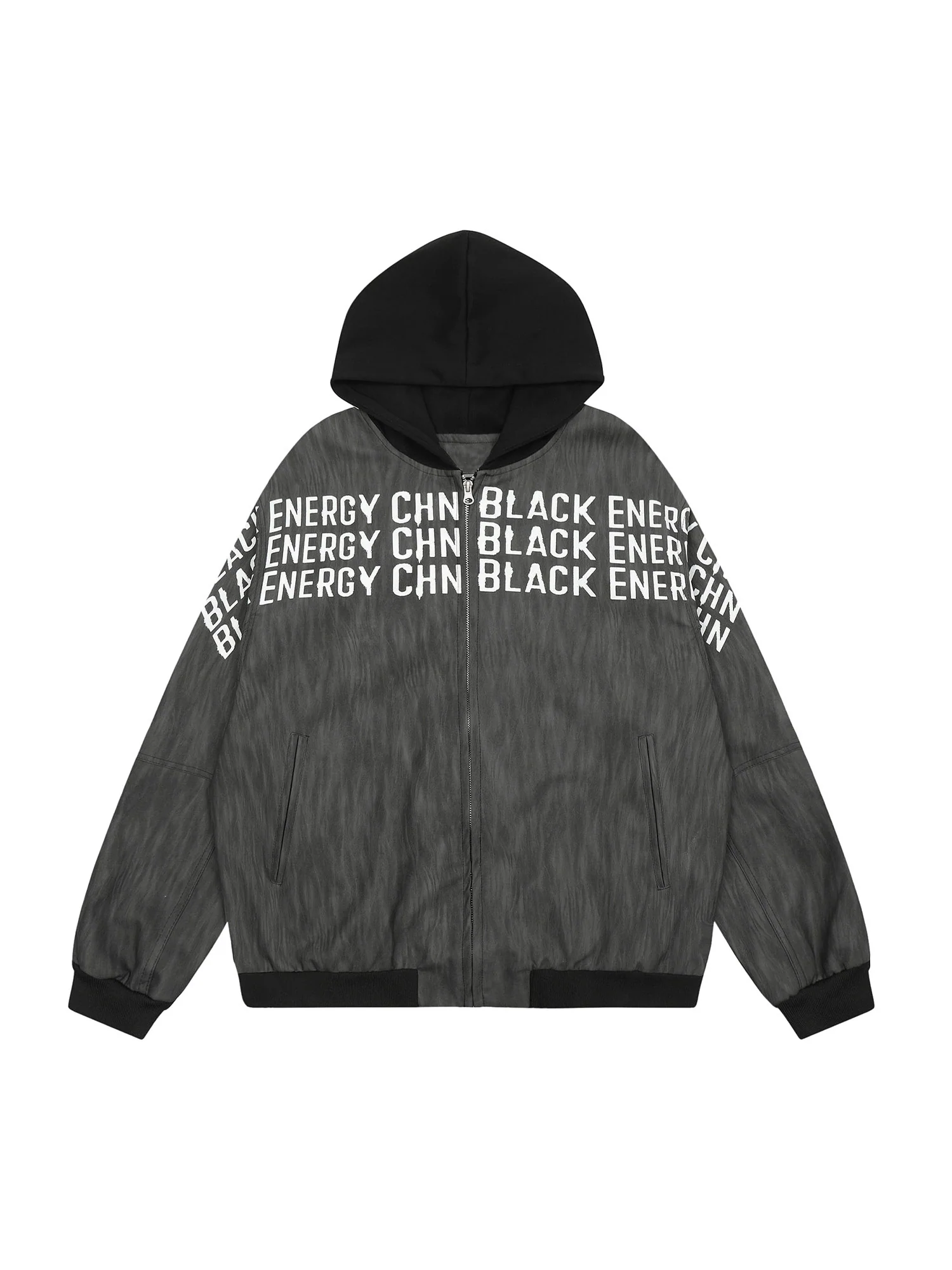 Patchwork Print Zip Up Hooded Jacket