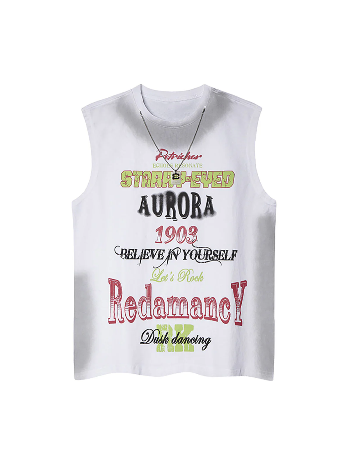 Distressed Washed Patchwork Gradient Denim T-shirt